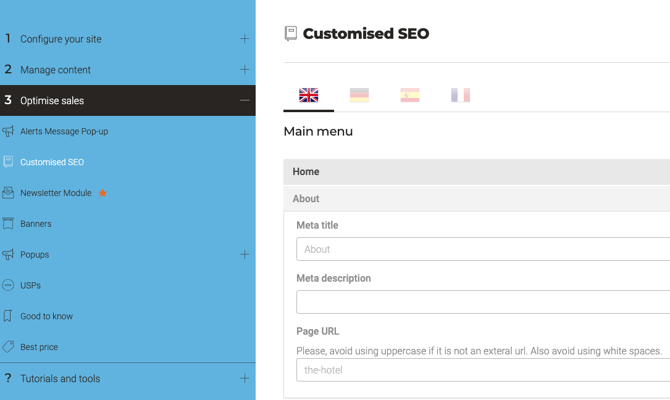 In the CMS you go to 3. Optimise Sales > Customise SEO