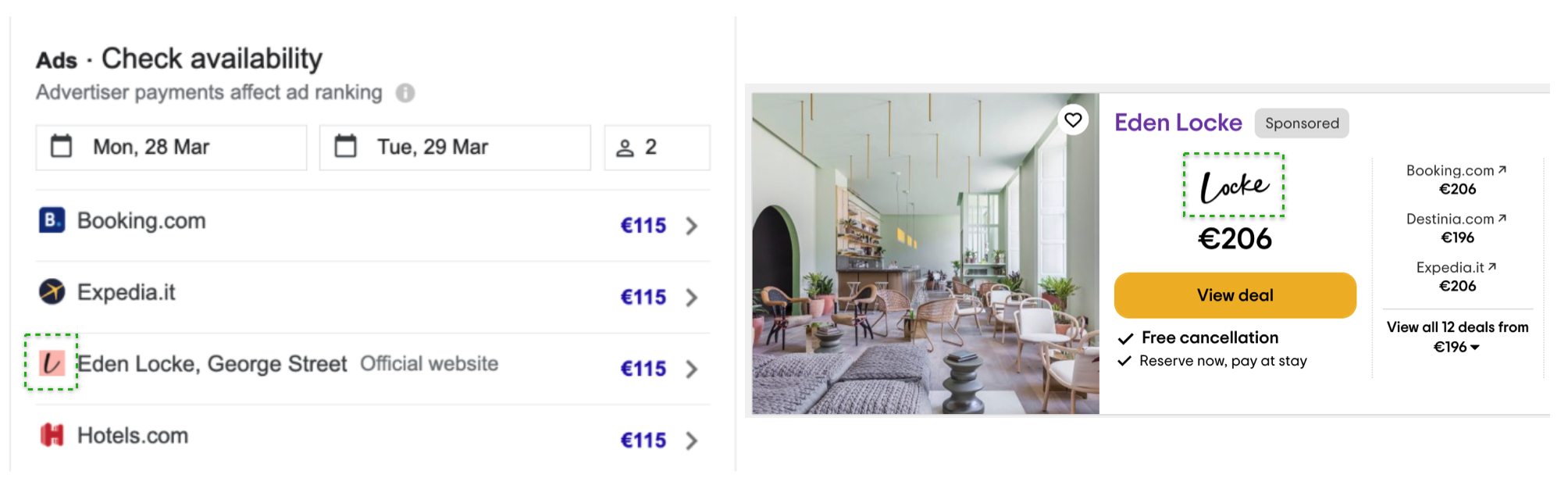 Example of a Hotel advertising on Metasearch with Brand Icons: