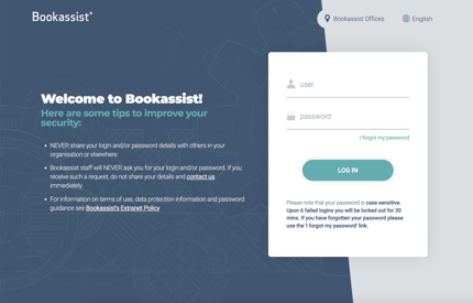 Before you can access reports, you will have to log in to Bookassist Intelligence. Please enter the same login details that you are using to access our extranet to manage your Booking Engine.