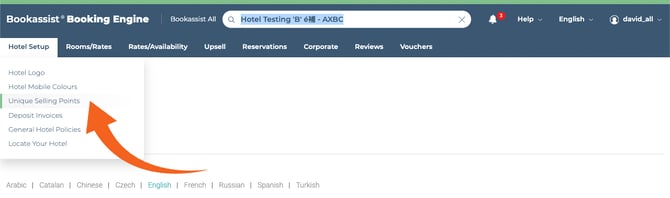 A new tab is displayed on the Menu, in the Hotel Setup tab called ‘Unique Selling Points’: