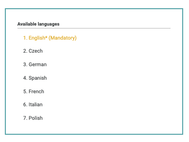 All active languages on Booking Platform will be indicated on the right hand side, being English mandatory.