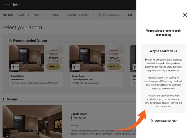 Enhance the booking experience by showcasing your clients key hotel benefits