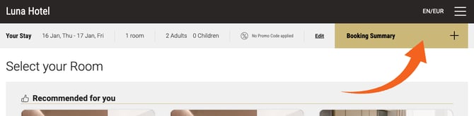 In this first delivery, clicking on the Booking Summary CTA will display the Unique Selling Points when the Cart is empty.