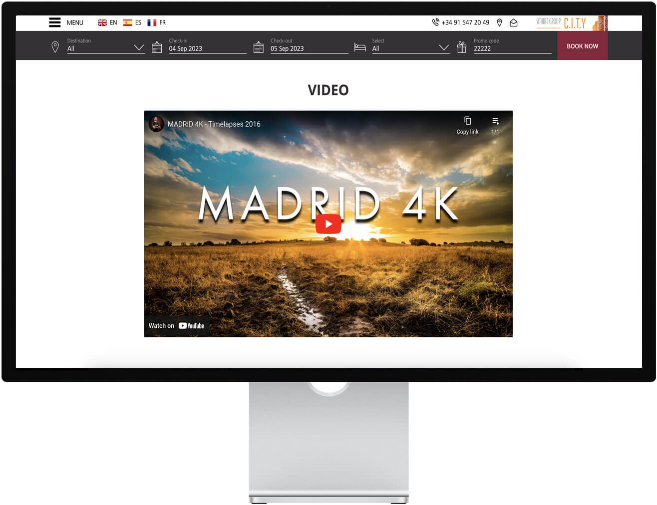 Engage your clients with a touching video and showcase the benefits of your property. This gives the website a modern, fresh and dynamic first impression as the video is autoplayed as soon as the user enters the website.