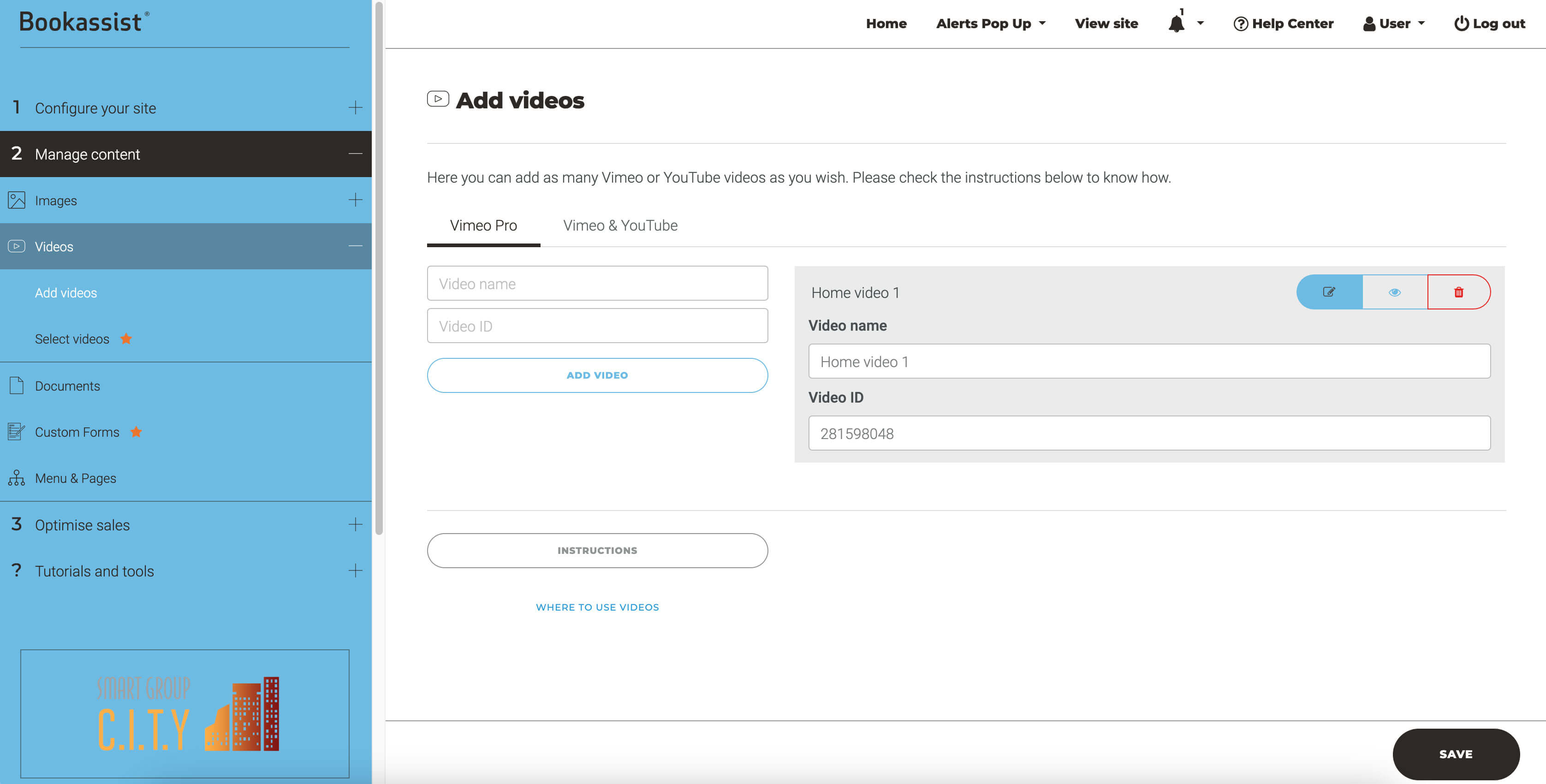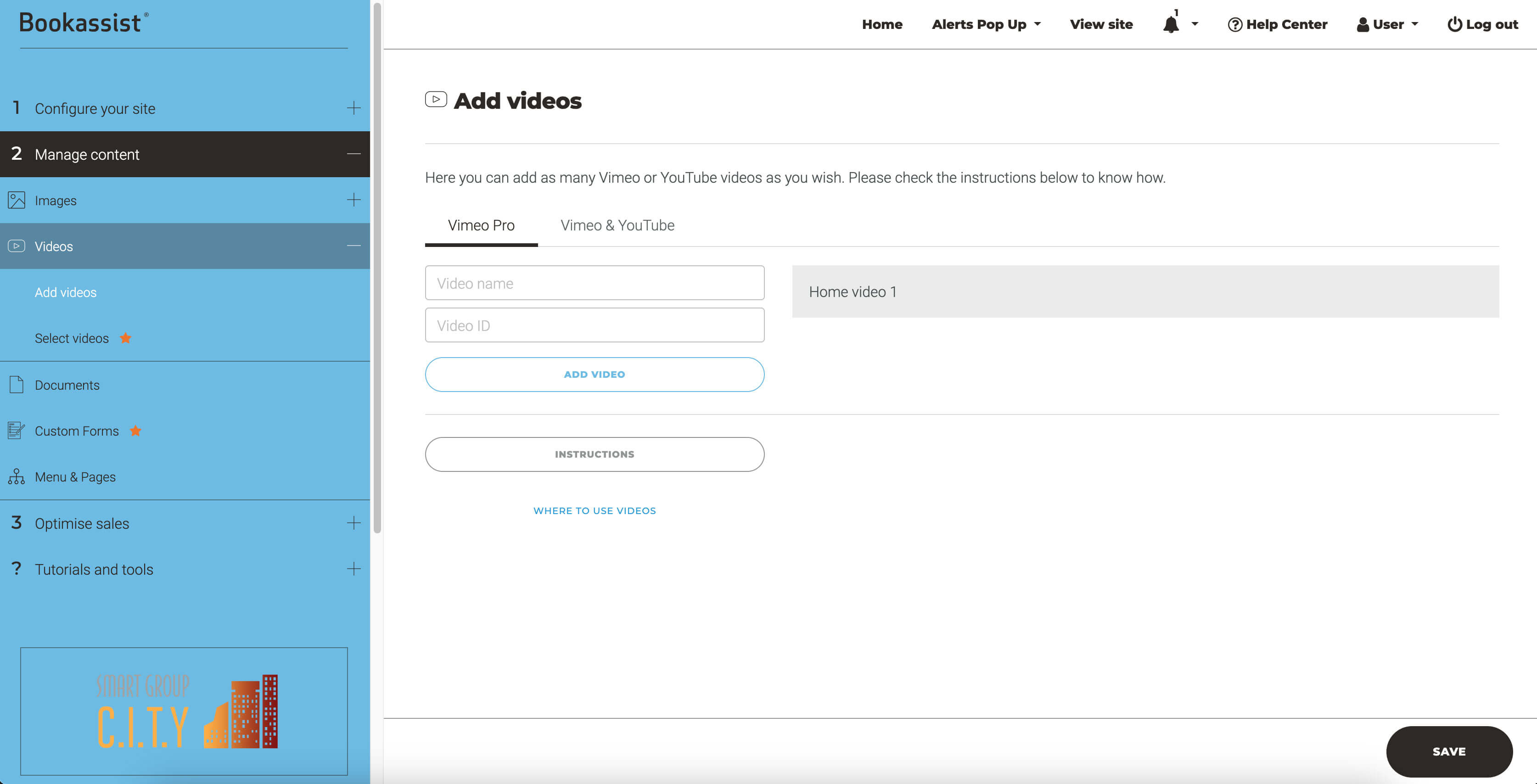 In this section you'll be able to add videos from both Vimeo and YouTube