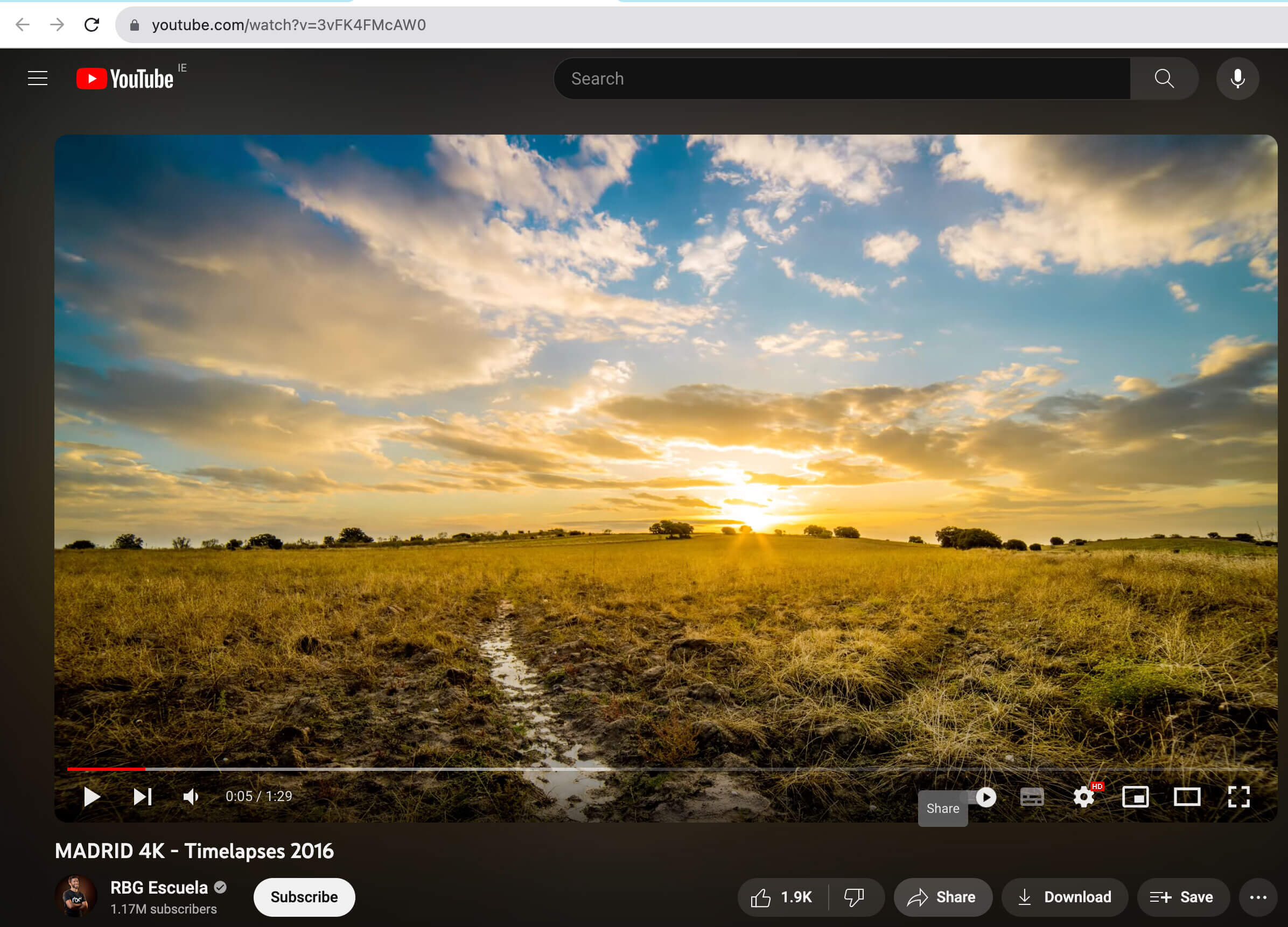 - Click on the Share button right below the video