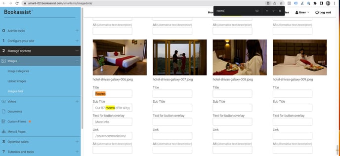 ACTUALIZACIÓN: Se ha actualizado el CMS para incluir un campo de búsqueda en la parte superior derecha de la pantalla de datos de imagen.
