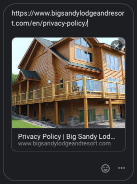 A continuación, observa el ejemplo de la URL de la página de la política de privacidad compartida en el chat de Google. Ten en cuenta que la imagen en miniatura es la imagen de esquema que se utiliza para generar la imagen. Esto también será lo mismo al compartir en otras redes sociales.