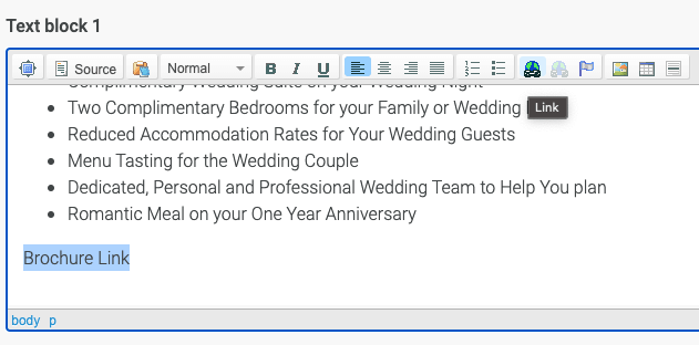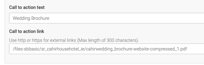 In the following example, we have uploaded and added a wedding brochure to the wedding page.