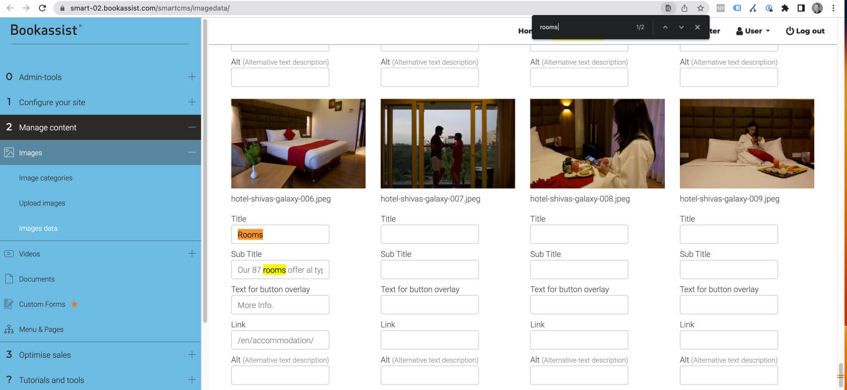Nel menu principale, vai a 2. Manage Content > Images > Images data